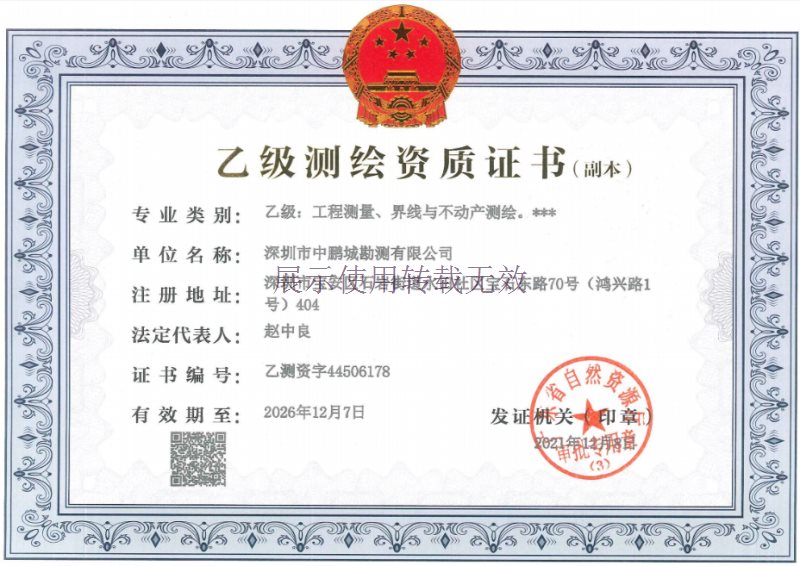 深圳市中鹏城勘测有限公司组建于2014年9月17日,是独立法人企业。多年来,在国家政策的指导下,在市、区各级领导的关怀下,公司始终坚持“以人为本、质量第一、科学管理、长远发展”的理念,运用科学的管理手段,诚实的工作态度,学习和掌握先进的管理经验,企业得到不断地发展壮大,具有一支刻苦自励、埋头苦干、开拓创新的年轻队伍。
