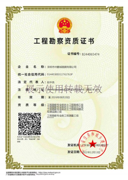 资质情况:工程勘察专业类岩土工程勘察乙级